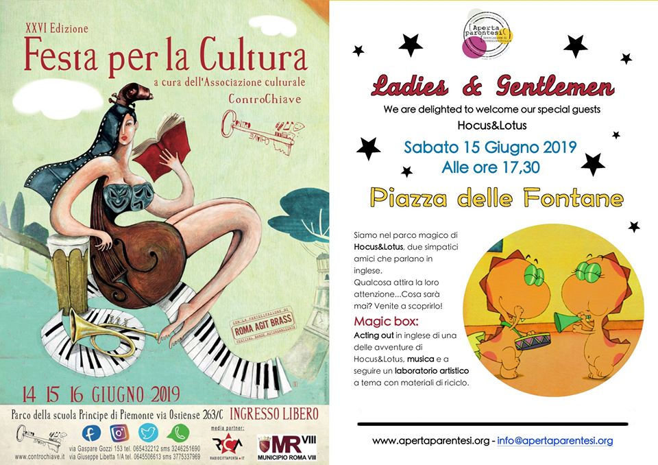 Ci saremo anche noi! Aperta parentesi vi aspetta sabato 15 giugno dalle 17.30 con🎁MAGIC BOX🎁- storytelling in lingua inglese per bambini, tanta musica e a seguire laboratorio artistico a tema. Entreremo nel parco magico di Hocus&Lotus, due simpaticissimi amici dinocrocs che parlano la lingua inglese, per vivere insieme una delle loro entusiasmanti avventure. Siete curiosi di sapere di cosa si tratta? Venite a scoprirlo con noi!